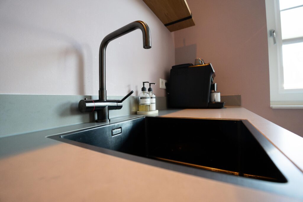 De keuken is niet alleen mooi, maar ook heel praktisch. De Selsiuz kokendwaterset met haakse kraan maakt het makkelijk om snel kokend water te krijgen. Ook de Combi boiler zorgt ervoor dat je altijd snel warm water hebt, wat het gebruiksgemak flink verhoogt.